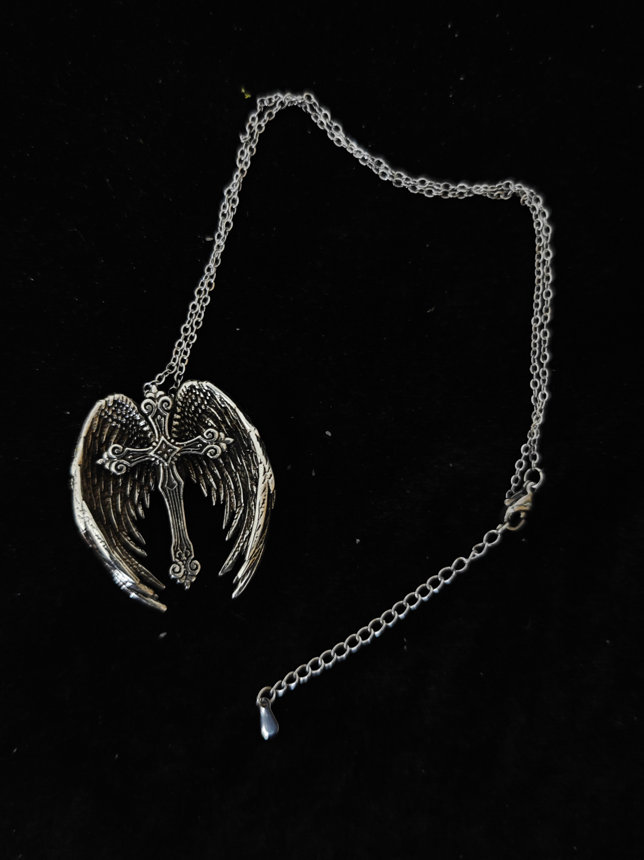 Gothic Angel Cross Necklace Vintage Distressed Pendant