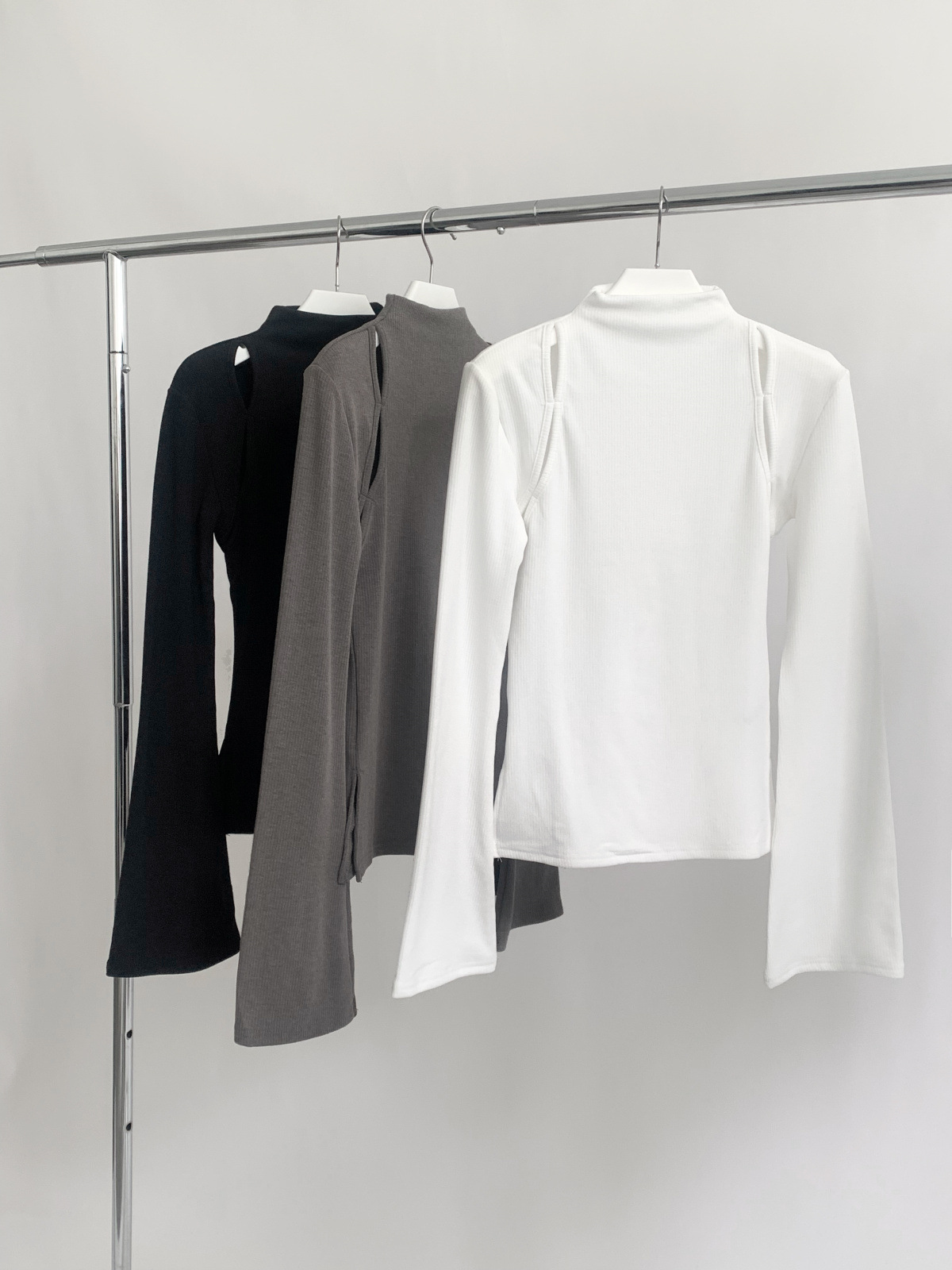 Pure and alluring high-neck see-through long-sleeved T-shirt
